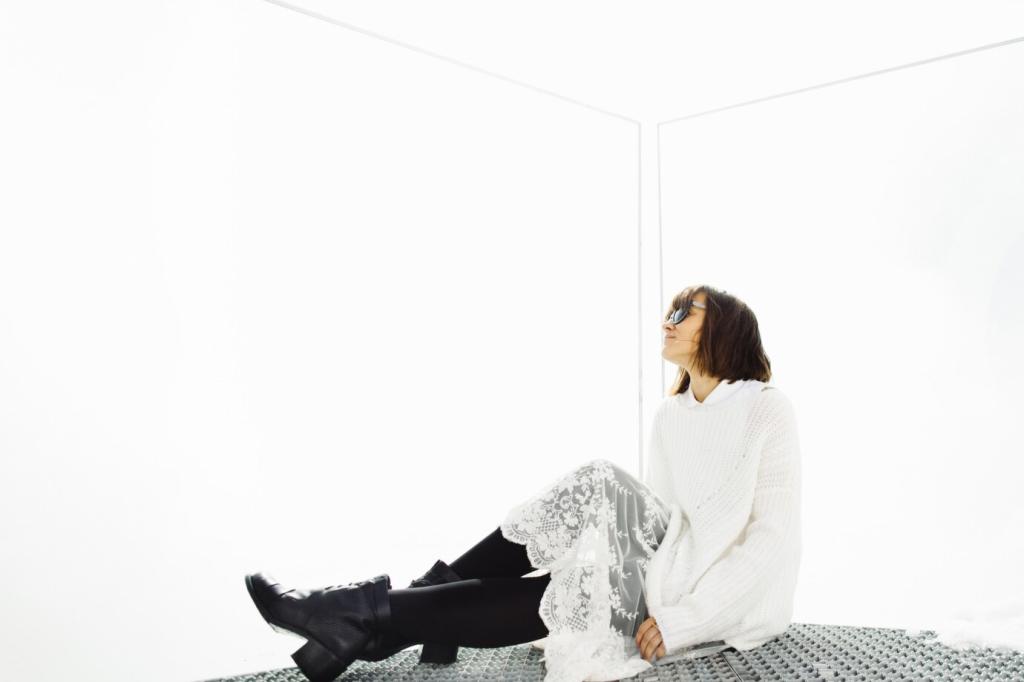 Skizziere den Grundriss, markiere Wege und Steckdosen, und reserviere rund um den Sessel mindestens 60 Zentimeter Bewegungsraum. Ein Beistelltisch sollte in Reichweite sein, ohne sich aufzudrängen. So vermeidest du Kollisionen zwischen Lampenfuß, Bücherstapel und Zehenspitzen – und alles greift angenehm ineinander.
